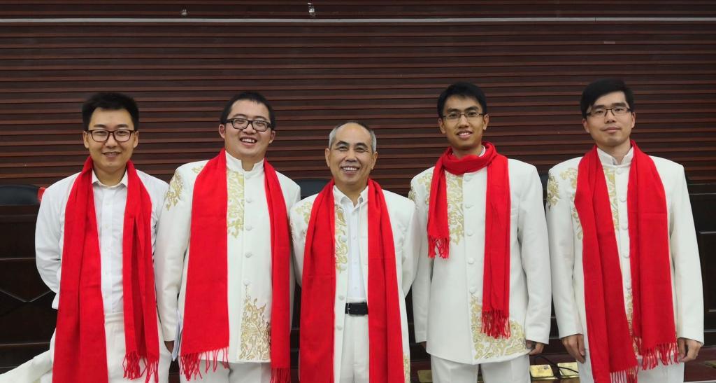 特别致谢马青波老师。投入巨大精力,不但领唱,还承担了服装、道具、化妆、背景视频、联系教练钢琴等具体组织工作,功不可没!男老师领唱龙博老师,音质高亢,高度敬业.