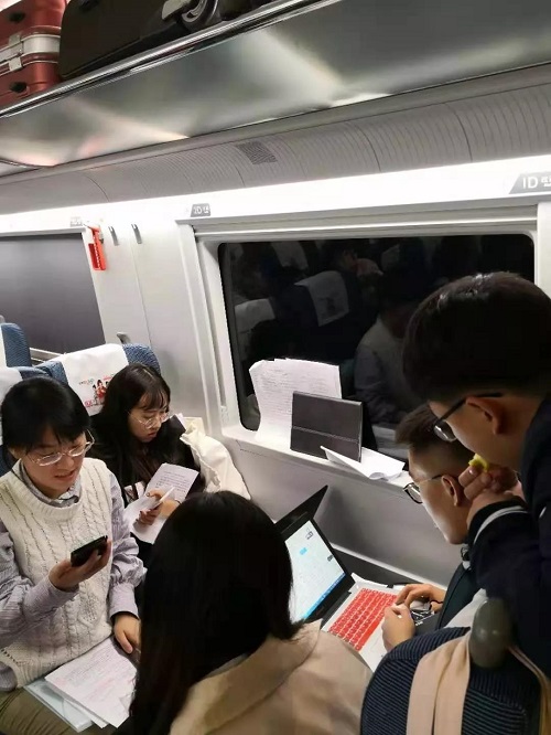 为做好充足的赛前准备,代表队一行九人,提前两天到达徐州。从早上7点到晚上12点,所有队员都聚在一起,反复修改比赛文书、多次模拟演练。