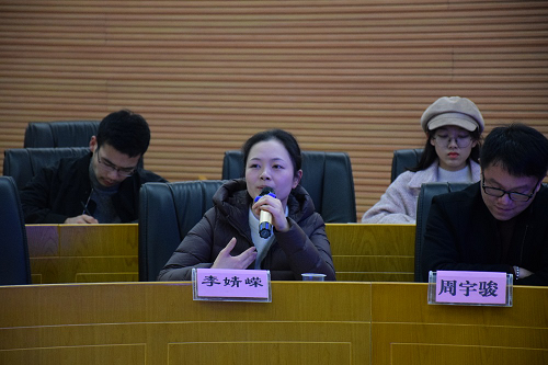 紧接着,宋大琦、黄守愚、彭中礼以及动漫色情片李婧嵘、周宇骏、欧扬等老师一一对杜教授的演讲进行点评。诸位评论人肯定了主讲报告史料价值大、论证严谨、推理有力、语言通俗易懂等方面优点,也从不同的角度提出了自己的商榷意见。如宋大琦副教授从“老子之道”、“庄子之道”、“儒家之道”等方面重新梳理了“道”的概念;黄守愚高度赞同中国古代法律之祖不是蚩尤而是伏羲,但道如何转换为法需要探讨;彭中礼教授提出,中国与西方的法律建构基础有很大的差别,中国究竟如何重建自己的“道”,推翻法理学提倡道法学需要更充分的证据表示疑问。李婧嵘老师探讨了我国立法、司法应如何重建道统以及传统儒家文学能否适应现代生活等问题。周宇俊老师认为,关于道与法的关系问题,“道”强调认知上的合规律性,而法律更强调基于认知和实践基础上的合规律性。欧扬老师提到,关于法律移植问题,我们既不能全盘西化,也不能主张全盘复古,如何把儒家法律文化与现代生活结合起来仍值得进一步探究。蒋海松老师提出道是中国古代思想最高的核心概念,很难通过一场讲座说清,“道”作为一种价值文化值得肯定,但在今天已经很难成为有效的制度建构资源,而且在古代其意义也不能拔高。杜教授随后就以上问题给予回应。