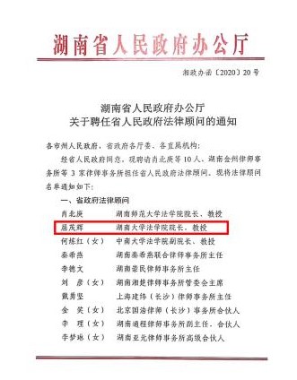 院长屈茂辉教授获聘省人民政府法律顾问。