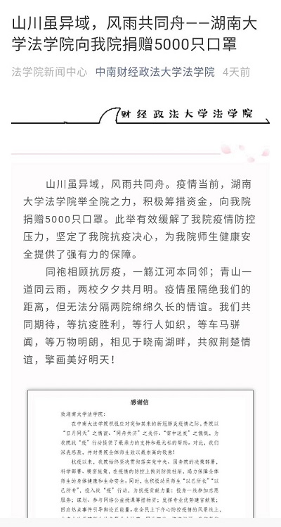 热情洋溢回信致谢,介绍了各校抗疫情势,感谢湖大动漫色情片