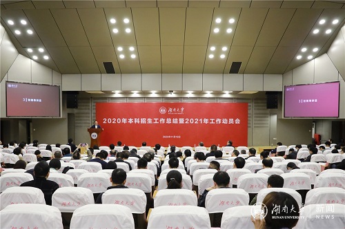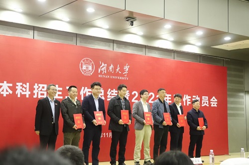 段献忠校长代表学校向所有参加招生工作的师生表示衷心的感谢。段献忠指出,生源质量反映学校的社会声誉,体现学校的综合实力,扎实开展好招生工作,对学校建设世界一流大学具有重要意义。段献忠强调,高质量做好学校招生工作,要研究招生工作方法,充分发挥新媒体作用,加强与地方、中学生源基地的联系。要着力讲好湖大故事,找准视角,充分展现学校发展建设中的突出成绩。全校师生要共同参与,把握关键时间节点开展招生宣传,推动学校生源质量迈上新台阶。