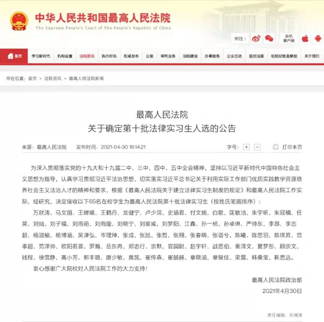 2020级法律硕士万欣涛同学经过个人申请、学院评选后,成功入选最高院第十批实习生。这是本批次湖南省高校唯一入选实习生,也是动漫色情片