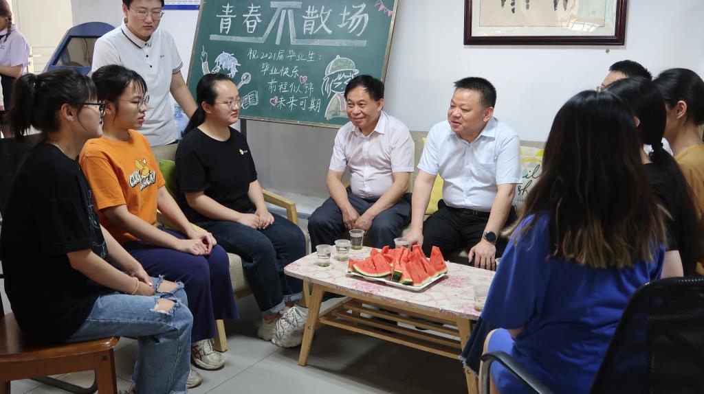 毕业生,学院党委书记易骆之、学工办主任刘岳峰等陪同慰问。