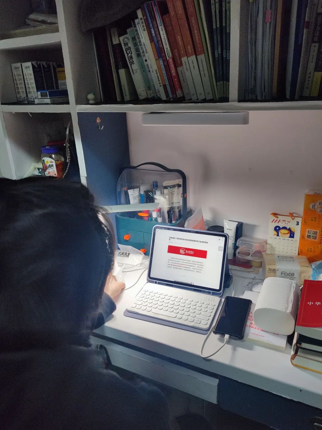 周六晚上我们班级召开了腾讯线上会议,组织班里同学们集体学习教育部的三份新冠肺炎疫情防控指南文件,旨在分类引导学生在校、居家防护、集中隔离医学观察的安全学习、健康生活。现阶段湖大处于管控区,绝大多数学生都是在校。日常生活学习,应当保持安全的社交距离,遵守出入校门的规定,坚持去戴口罩排队食堂打饭,自觉配合核酸检测,宿舍通风不串门,主动接种新冠病毒疫苗加强针,在学校要求的线上网课按时完成学习任务,保持充足睡眠,坚持科学锻炼身体,养成健康生活好方式等。