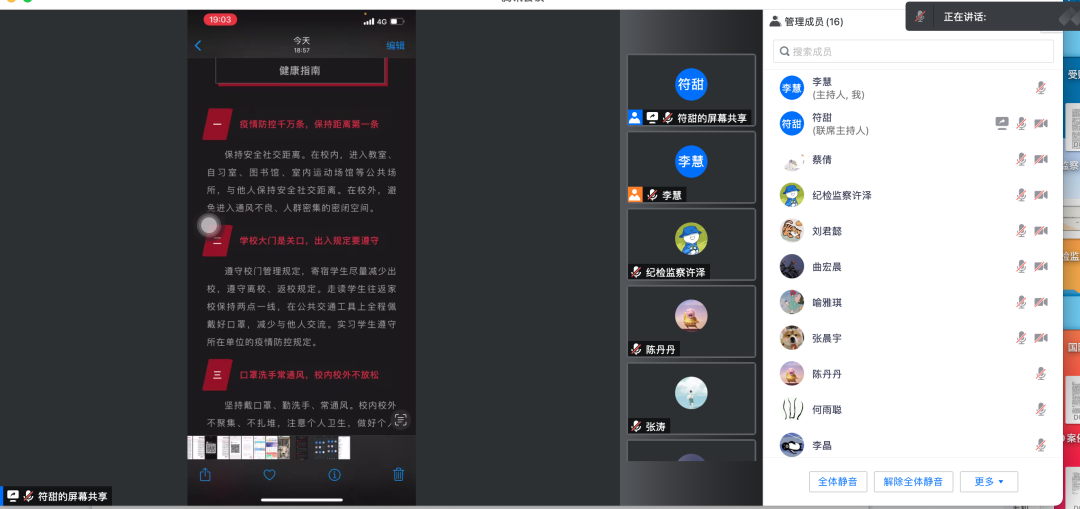 2022年4月3日上午10时,我部线上组织开展了学习教育部印发的《学生疫情防控期间学习生活健康指南》,该《指南》涵盖学生在校生活、居家防护和集中隔离医学观察几种情形,为我们在疫情期间健康积极生活提供科学、有效的建议和引导。
