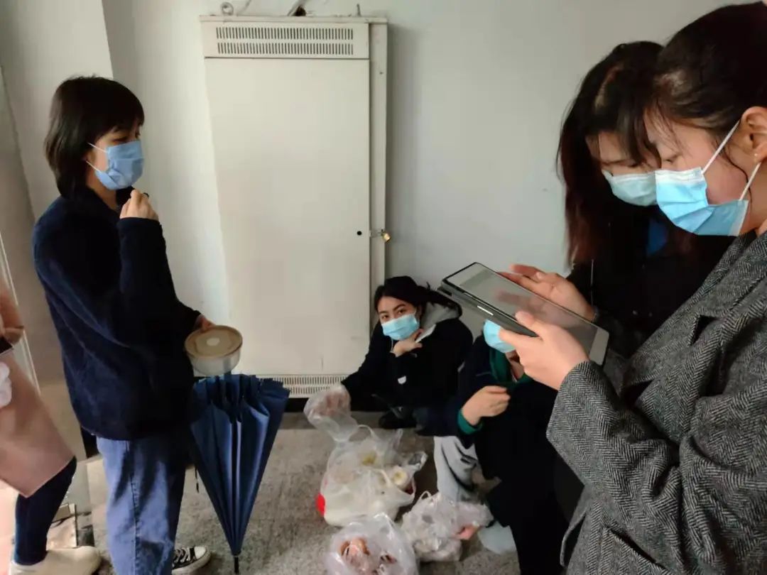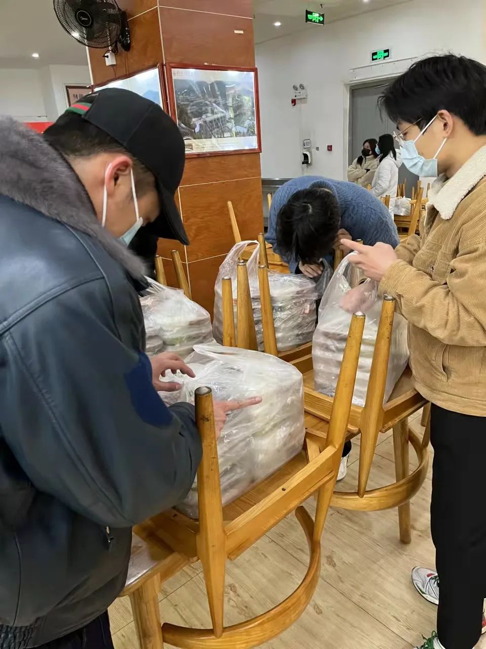 封校后的宿舍园区,同学们的饮食成了亟待解决的问题。志愿者每天不厌其烦、任劳任怨地统计同学们一日三餐的订餐数量,与送餐的食堂人员核对信息,按时下楼接收物资,并及时告知同学们自提领取。3栋志愿者们体现出巾帼不让须眉的架势,将几百份饭菜运往派餐的指定地点。志愿者们将简单的事情重复做,重复的事情用心做,送去的是同学们的生活物资,传递的确实对同学们的关心与关爱。