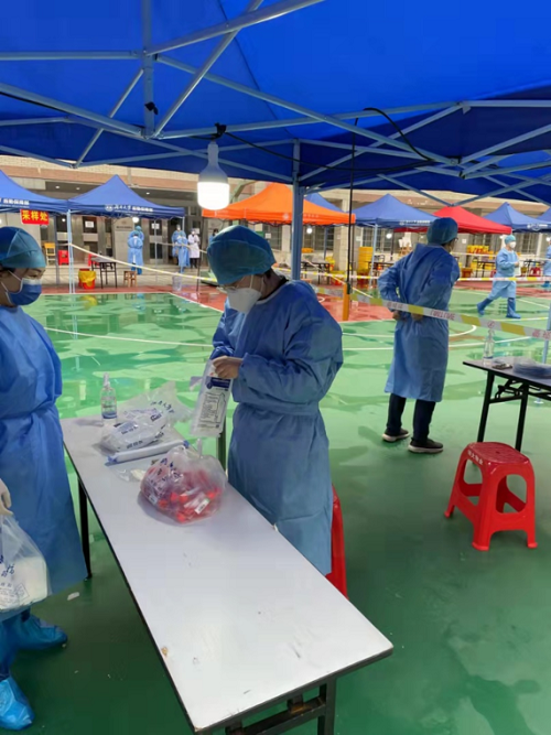 在园区的学生管理教育工作、处理学生的突发状况。比如转运红码学生,协调突发疾病的学生外出就医、安置在外隔离的学生返回园区等。同时,在没有授课任务时,她还作为园区志愿者参与核酸检测的信息录入和秩序维持等工作。