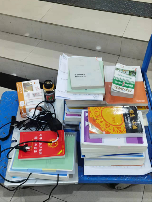 (罗英老师在复试工作结束后将法学楼自习室同学们的书和电脑一并拖至天马园区)