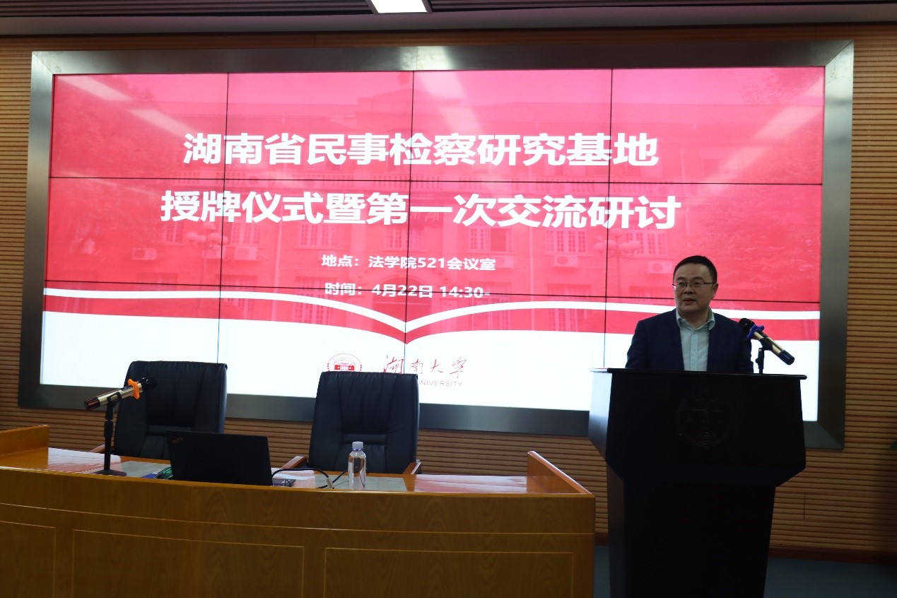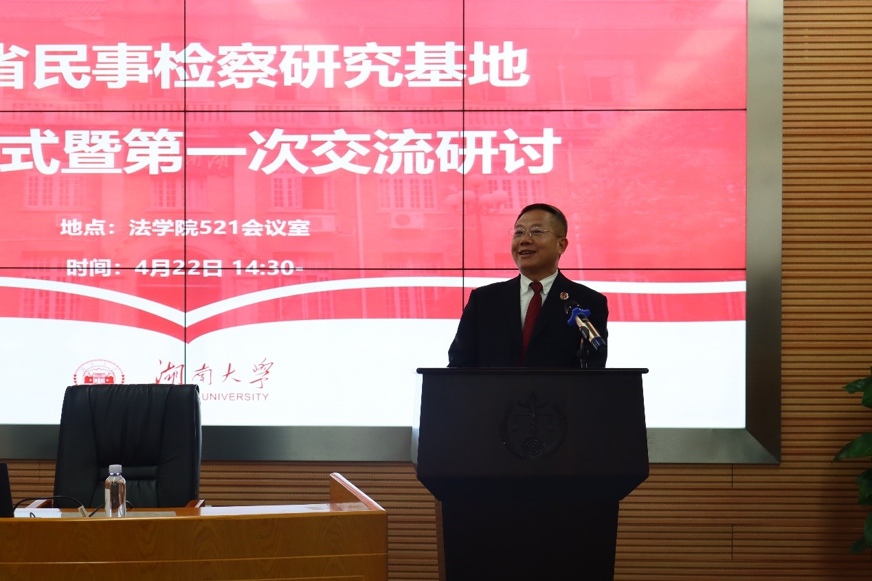 多次派出专家教授赴省检察院进行业务培训授课、专家学者论证、竞赛集训指导,为湖南民事检察队伍在全国多次业务竞赛中取得佳绩倾注了大量心血;此次民事检察研究基地的成立,是进一步推动检察实践和法学教学融合发展的务实之举。他表示,期待基地对事关民事检察长远发展的重大战略性问题进行深入研究,推动民事法学教育、理论研究和民事检察实践相得益彰、相互促进;期待基地聚焦民事检察业务重点难点热点问题,积极参与重点课题研究,助力法律监督水平提升;期待基地带动全省检察机关形成钻研专业问题、研究检察业务的浓厚氛围,让更多检察人员尽快成长为检察实务的行家里手、司法办案的中坚骨干、理论研究的专家人才;期待基地发挥桥梁纽带作用,促进检察机关与法学界、科研院所的交流互动,实现资源共用、成果共享、优势互补。