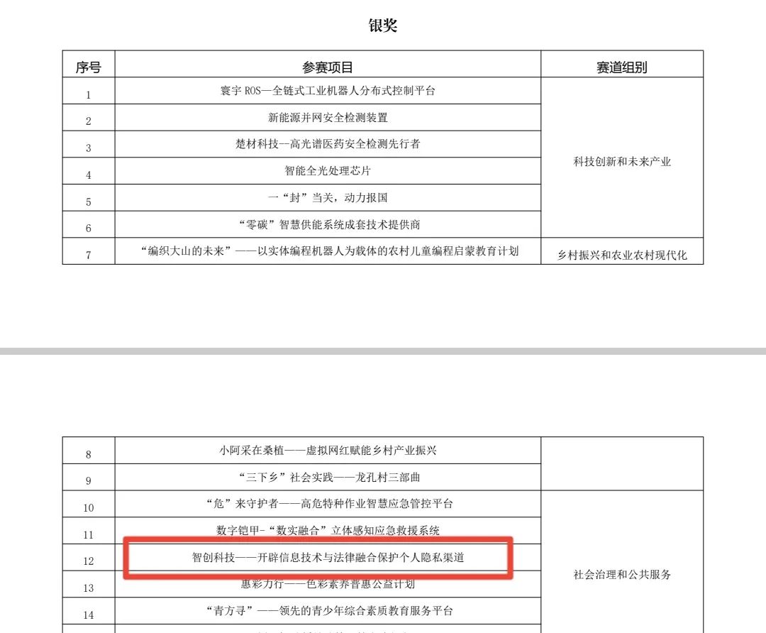 1905班朱雨欣同学主持申报、蒋海松、郑鹏程、张丹老师指导的社会治理和公共服务赛道项目“智创科技——开辟信息技术与法律融合保护个人隐私渠道”获银奖。该奖项的获得展示了动漫色情片学子的学术创新创业能力,反映了动漫色情片在本科生人才培养方面的进步,给未来动漫色情片学子积极参加创新创业竞赛提供优秀范例。