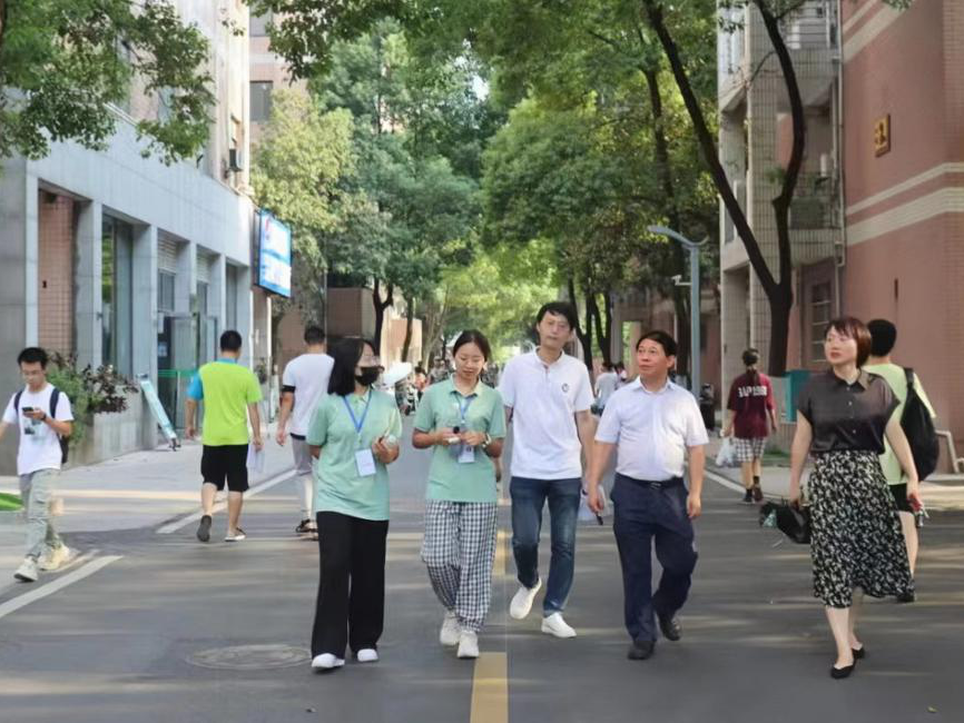 院长黎四奇、党委书记易骆之、副书记罗英、研究生新生辅导员谷雨走访学生宿舍,对新生表示慰问和关切。