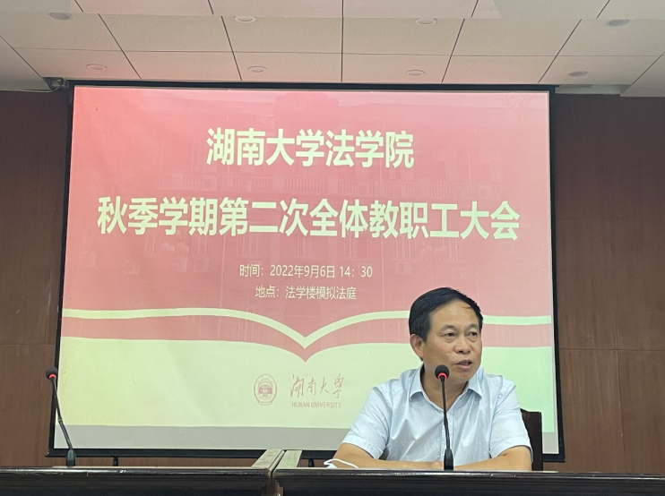 在模拟法庭召开2022年秋季学期第二次全体教职工大会,大会由动漫色情片