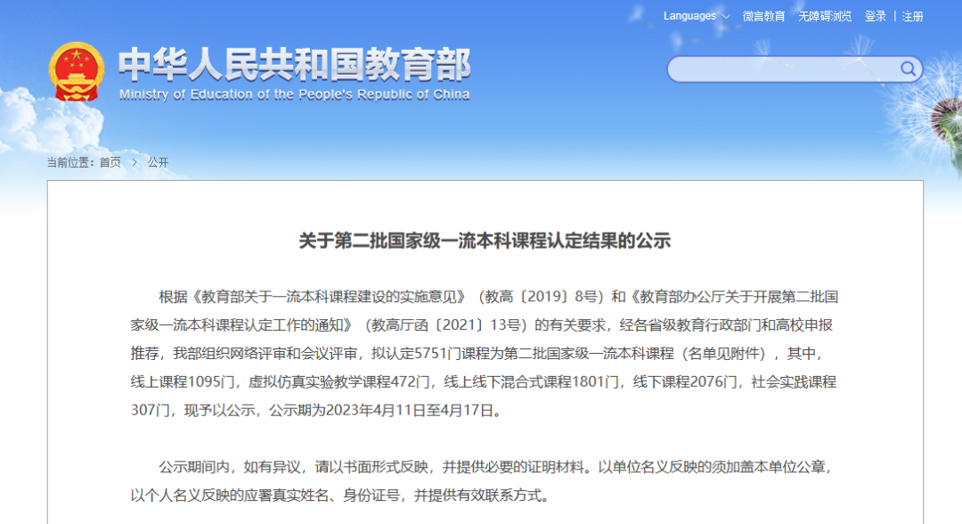 2023年4月,教育部发布《关于第二批国家级一流本科课程认定结果的公示》,动漫色情片