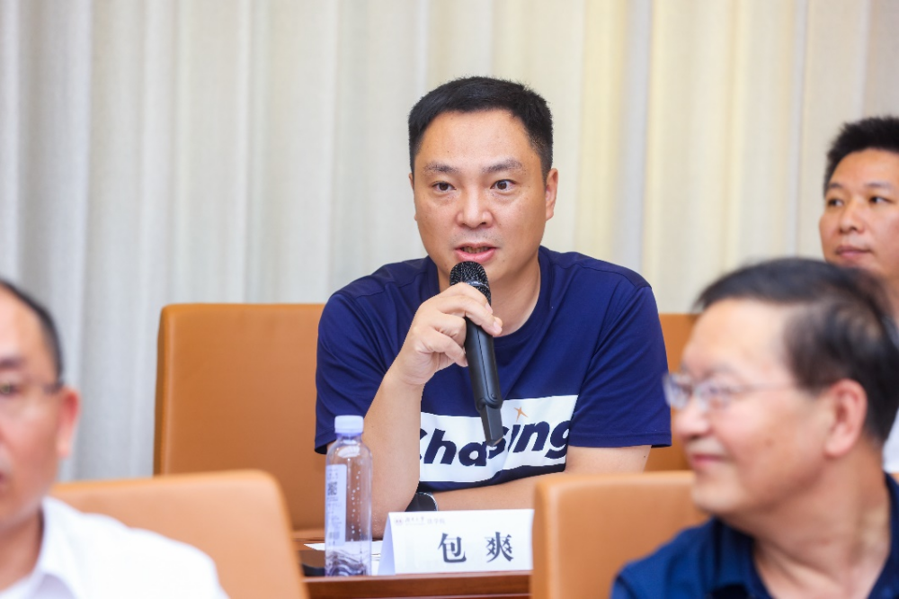 湖南财信信托有限责任公司总裁包爽校友分享了逻辑和问题导向的法学思维在工作中的优越性,感谢刘定华老师传授的法学知识,对他帮助很大。他回顾了自己在生活、就业和工作中刘定华老师给予的关心与悉心指导,并向刘老师表示感谢。他还就基金如何发展壮大提出了自己的看法。