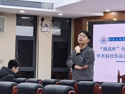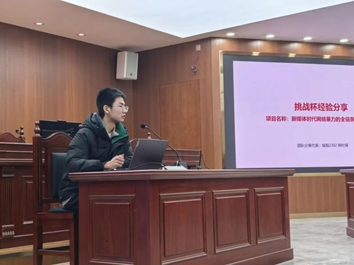 苏钰旸同学为大家详细介绍了“挑战杯”赛事的具体信息,将大赛与法学实际结合,聚焦于“大挑”主赛道的哲学社会科学类社会调查报告作品类别,并结合热门选题方向、往届获奖选题、评选要求为大家参赛给出切实的帮助和建议。