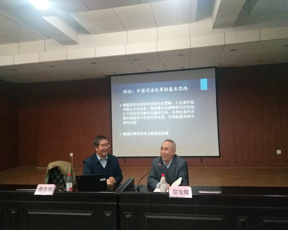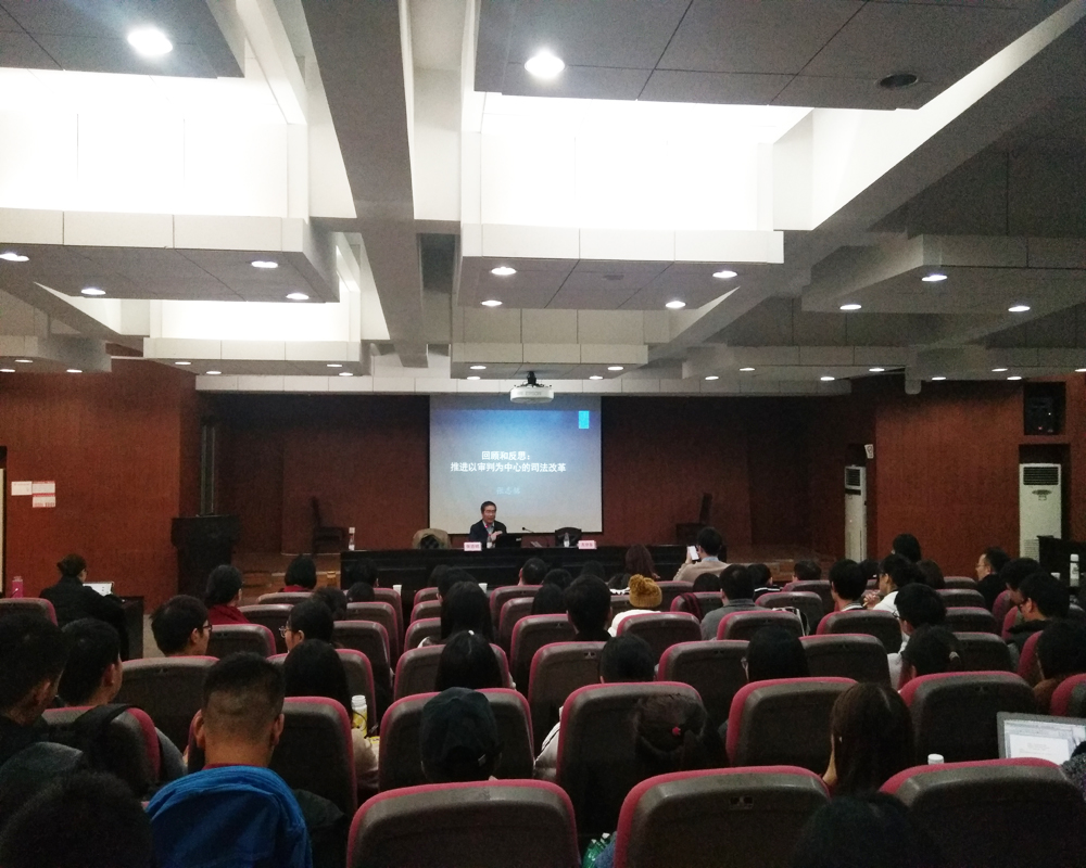 讲座伊始,张志铭教授直入主题,提出本次讲座围绕“回顾与反思:推进以审判为中心的司法改革”这一话题展开。在接下来近两个小时的讲座中,张志铭教授带领听众回顾了十八届四中全会以来司法改革发展的“波澜壮阔”,深刻剖析了司法改革的必要性和先进性,一针见血地指出了了改革过程当中存在的许多问题。针对员额制改革和责任制改革,张志铭教授分别指出了其中存在的一些问题。他认为,当前的司法改革权威性有余而智识含量不足;许多改革措施不完善,导致存在许多司法改革的“乱象”,针对这一现象,他表示,司法改革应有一个整体性的框架和方向。张志铭教授还将司法改革的脉络梳理成司法权能、司法主体、司法责任、司法保障四个方面,他认为,司法改革总围绕这四个方面开展。最后,张志铭教授概括道:中国司法改革的基本思路应该是遵循国家治理和司法的内在逻辑,立足案件裁判厘定司法性质,塑造整全清晰的司法权能;从不同层面明确司法裁判主体,处理好裁判者履职保障和行权责任的关系,合理配置和落实裁判资源。