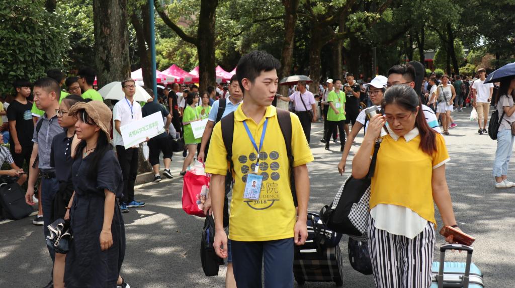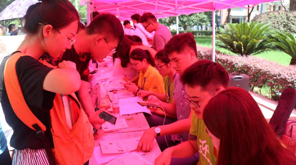 8月31日下午,迎新工作正式开始。2018级本科生辅导员王浩与迎新团队成员们在东方红广场与天马学生公寓的迎新工作站有条不紊的迎接着前来报到的新生。学院党委副书记、副院长付蓉芬也来到东方红广场,同新生家长亲切交谈。领导老师的关怀与志愿者们的热情服务,为来自全国各地的新生们带去舒适与清凉。烈日下,迎新团队成员们即使汗如雨下,依旧在为前来报到的新生们热情服务。夜深人静,迎新站灯火通明,团队成员在凌晨时分仍等待着新生们的到来。