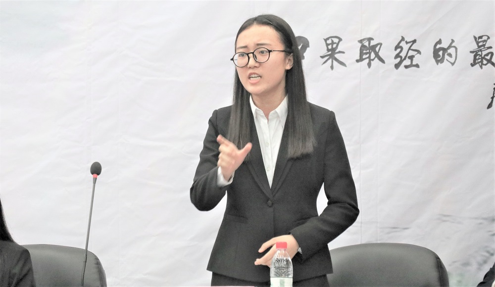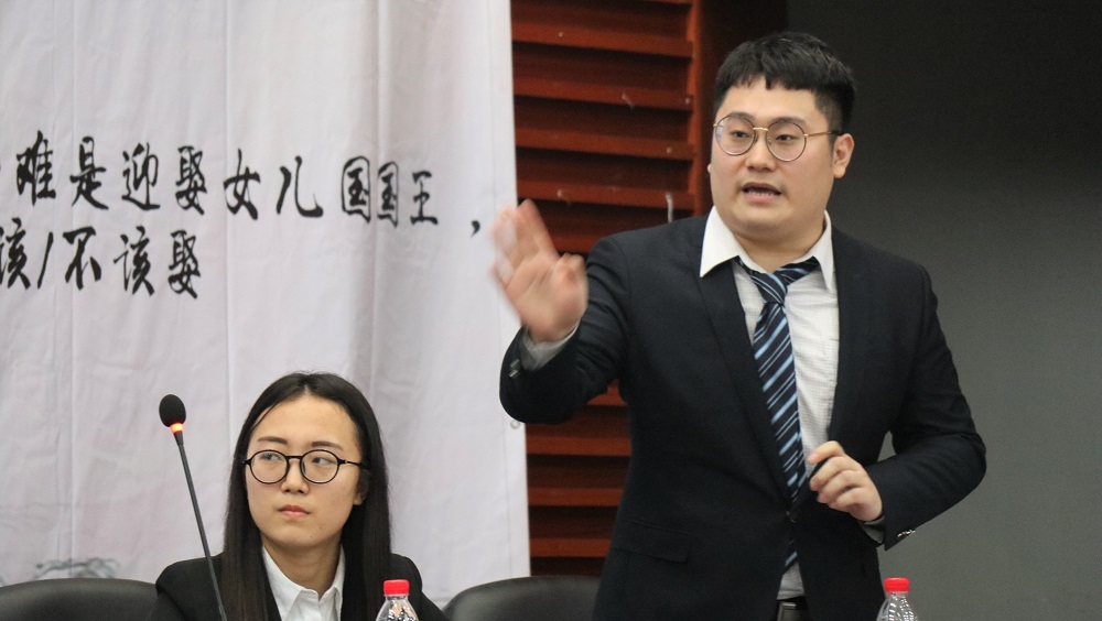 (我方三辩王钰霞有力盘问对方论证歧误)