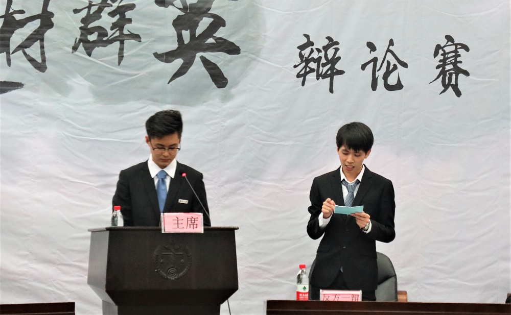 (辩论赛现场气氛紧张热烈)