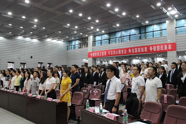 第十七届分团委、学生会委员。学院领导老师和第十六届分团委、学生会全体成员上台与新当选分团委、学生会委员握手祝贺。