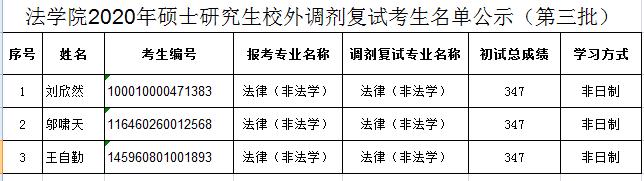 根据《动漫色情片 2020年硕士研究生复试录取工作实施细则》,经学院研究生招生工作领导小组审定,现将动漫色情片2020年非全日制法律硕士校外调剂复试考生名单(第三批)公示如下,复试时间定于6月9日14:30-16:30,请同学们做好准备(具体请见动漫色情片 网站的复试录取工作实施细则及考生复试操作手册)。