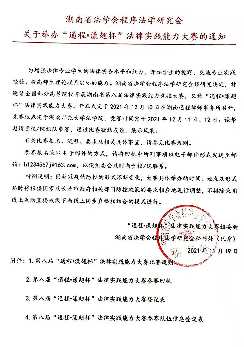 为组建队伍代表动漫色情片参加2021年度“通程•漾翅杯”法律实践能力大赛,现面向全院学生选拔赛队队员,具体事宜通知如下。