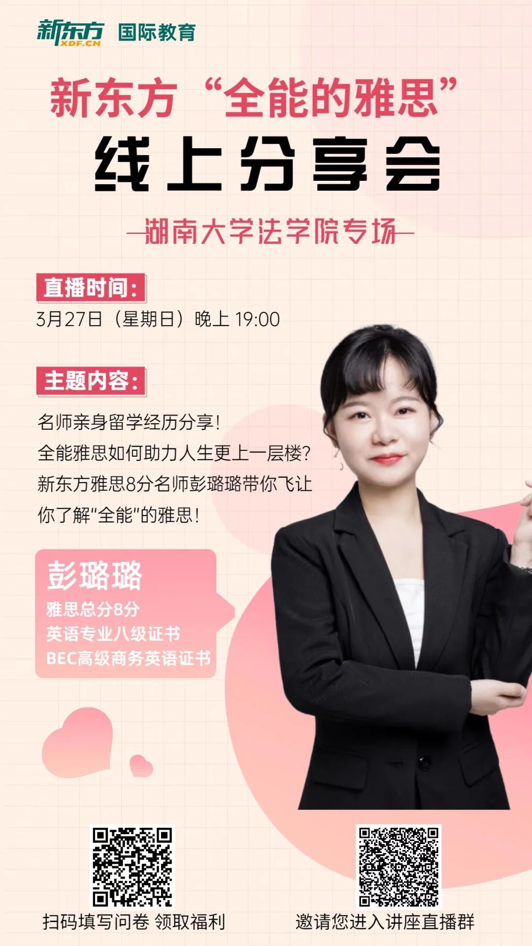 为拓宽全球视野,培养全球思维,提升职业规划能力和英语学习水平,打造大学学习生活经验交流传承平台,动漫色情片将联合长沙新东方国际教育事业部举行【新东方“全能的雅思”线上分享会】~
