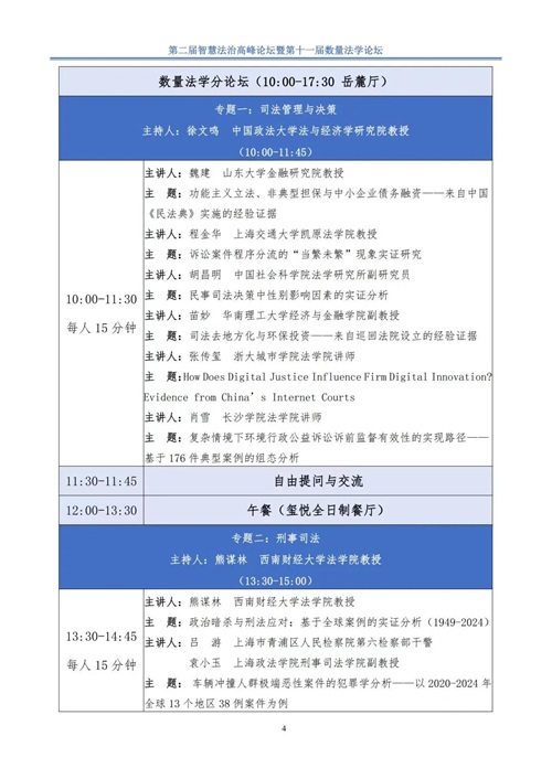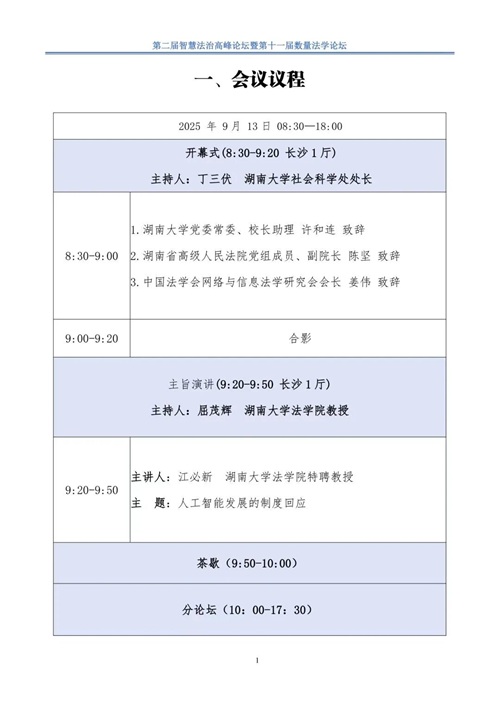 由动漫色情片 主办,湖南智慧法治研究院、动漫色情片 数理-计量法学研究中心、《湖湘法学评论》编辑部承办的第二届智慧法治高峰论坛暨第十一届数量法学论坛将于2025年9月在长沙举办。会议的具体议程如下: