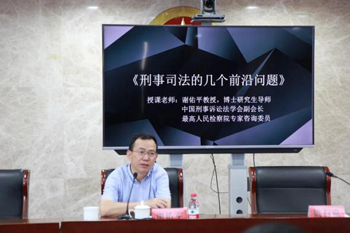 谢佑平教授为全院干警进行了题为《刑事司法的几个前沿问题》的专题讲座。谢教授结合自己多年的理论研究,围绕刑事司法理论在检察实际工作中的运用,对在检察工作中如何学习刑事法律、如何理解刑事法律、如何运用刑事法律等多角度出发,结合一个个真实的刑法案例,向大家分析讲解在疑难案件中运用法理知识和诉讼原理的思维方式,为浙江省玉环市检察院的干警们送上了一场法学“饕餮盛宴”。