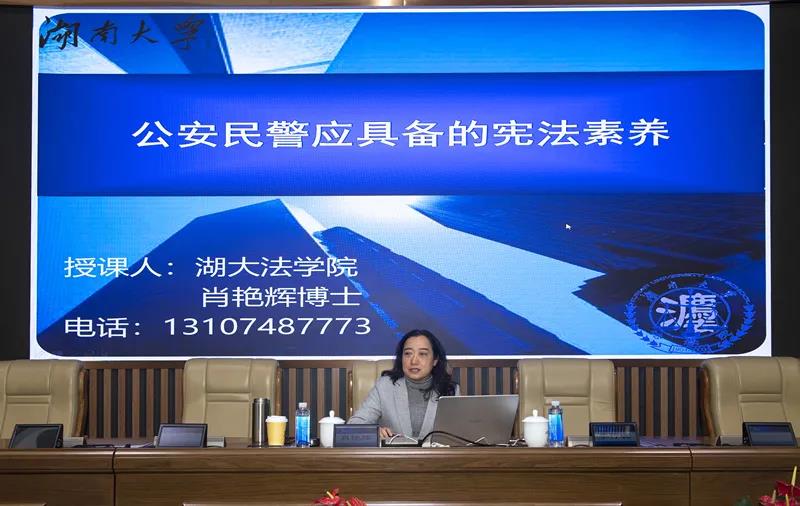 教授肖艳辉进行《公安民警应当具备的宪法素养》的主题讲座。市局全体在家局领导、相关部门负责同志在主会场参加讲座,会议以视频会议形式开至全警,共计1万余名民辅警参加。