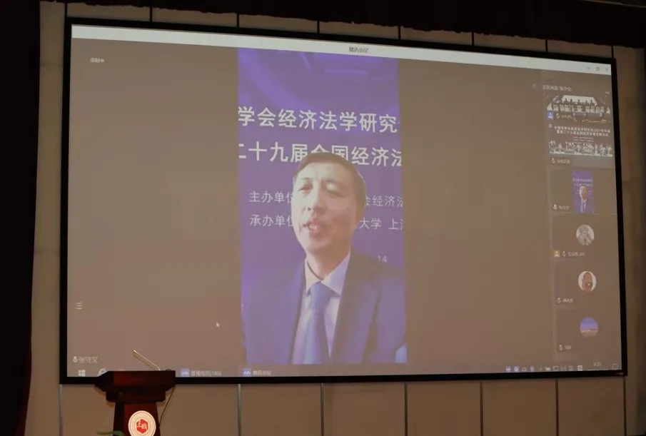 党委副书记、校长刘晓红,上海财经大学常务副校长徐飞出席会议并讲话。中国法学会经济法学研究会会长张守文教授致辞回顾了党的十八大以来我国在经济、法治建设方面取得伟大成就,指出数字经济正在重组全球要素资源、改变全球竞争格局,要实现有利于推动构建新发展格局,有利于推动建设现代化经济体系,有利于推动国家竞争新优势的目标,尤其需要大力强化经济有效调整,从经济法理论的角度,提炼发展格局、现代化格局、国家竞争力格局。经济法研究会各位同仁应当结合国内外数字经济发展的实际和相关的规律,从竞争法、财税法、金融法、产业法等等各个领域展开具体研究。