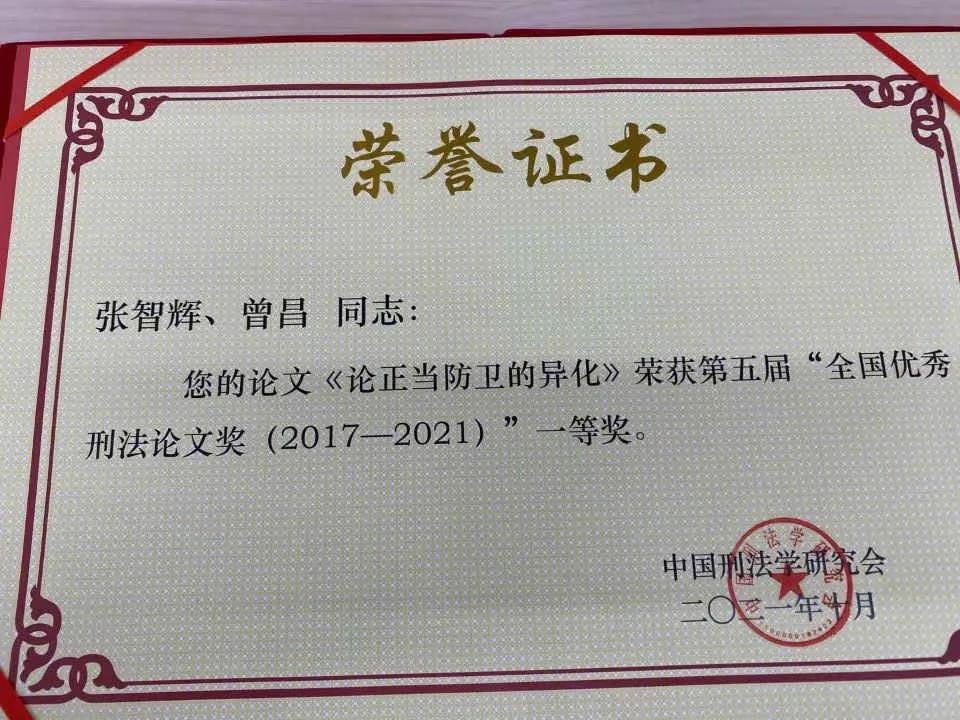 张智辉教授受邀参加线下会议并当选中国刑法学研究会学术委员会副主任,动漫色情片姚诗教授当选为中国刑法学研究会理事。张智辉教授、曾昌博士研究生合著《论正当防卫的异化》一文被评为第五届全国优秀刑法论文奖(2017-2021)一等奖,动漫色情片赵香如副教授论文《论总体国家安全观下刑法的基本立场》被评为二等奖。