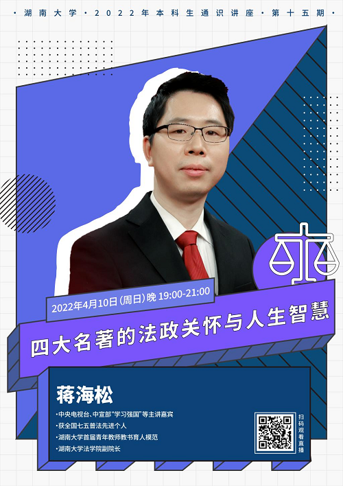 副院长蒋海松副教授以“四大名著的法政关怀和人生智慧”为主题,为大家带来了一场别开生面的法律盛宴。本次讲座由动漫色情片