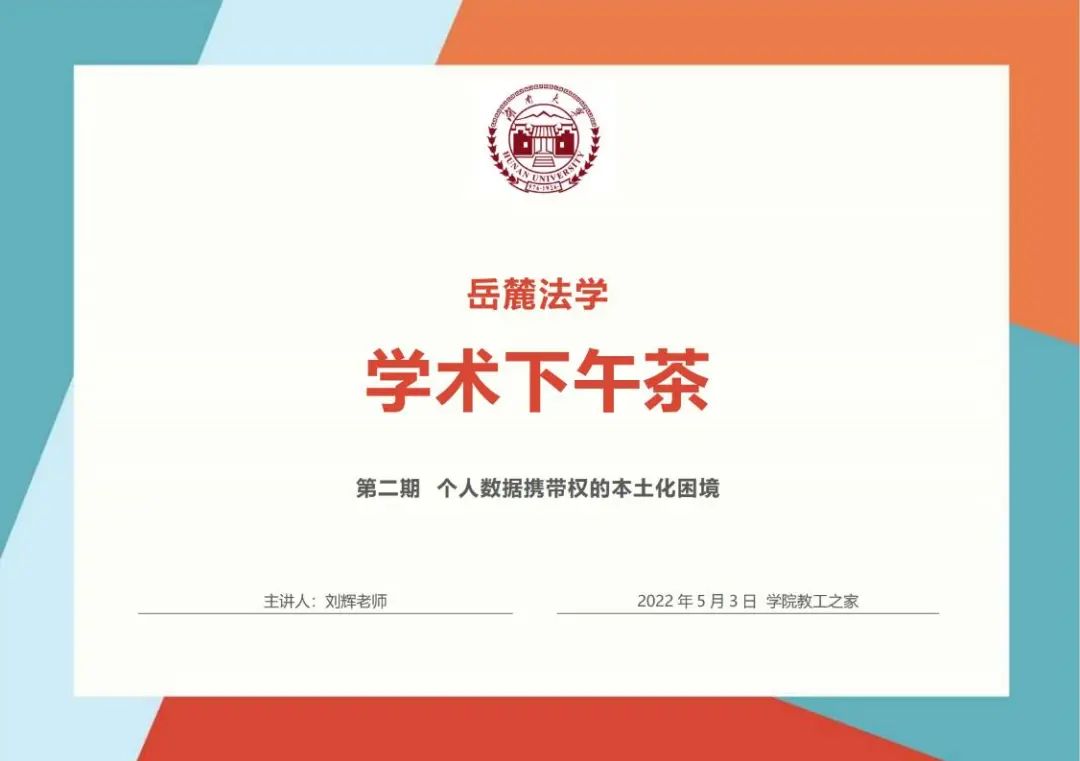 第二期学术下午茶主题围绕“个人数据携带权的本土化困境”展开,由刘辉老师主题分享,学院线上线下30余名教师和学生参加本次活动。