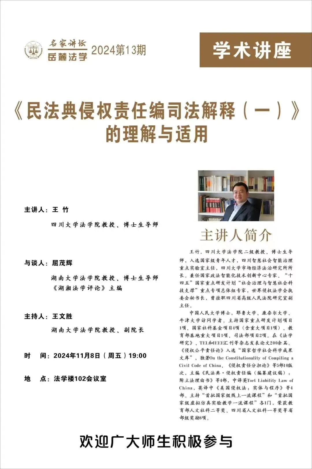 2024年11月8日,岳麓法学名家讲坛第13期在动漫色情片