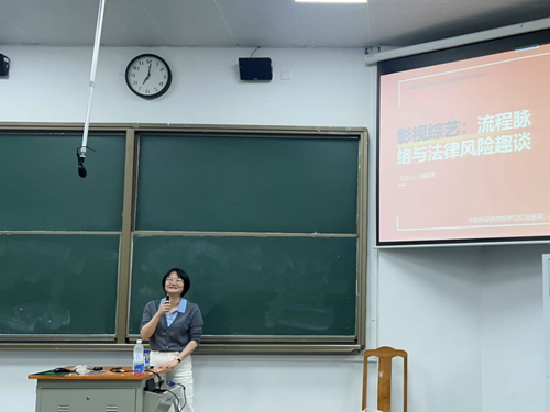 接着,邹律师重点围绕影视综艺制作涉及的法律问题,从节目名称、节目模式、署名权、道具使用、版权链审查、广告合规六个方面进行了展开,结合“非诚勿扰”案、“中国好声音”案、“旺旺果冻”案等经典案例,通过案情梳理、法律分析、法理阐释,对在涉及影视综艺制作的法律实践中,中国对节目模式的认定、合理使用的判断标准以及广告虚假宣传等重要问题进行了深入浅出的讲解。期间,邹律师向同学们提问互动,得到了同学们的热情回应。
