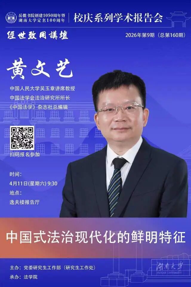 逸夫楼报告厅作“中国式法治现代化的鲜明特征”主题报告。本场报告会为“校庆系列学术报告”之一。校党委常委、校长助理许和连出席并致辞。