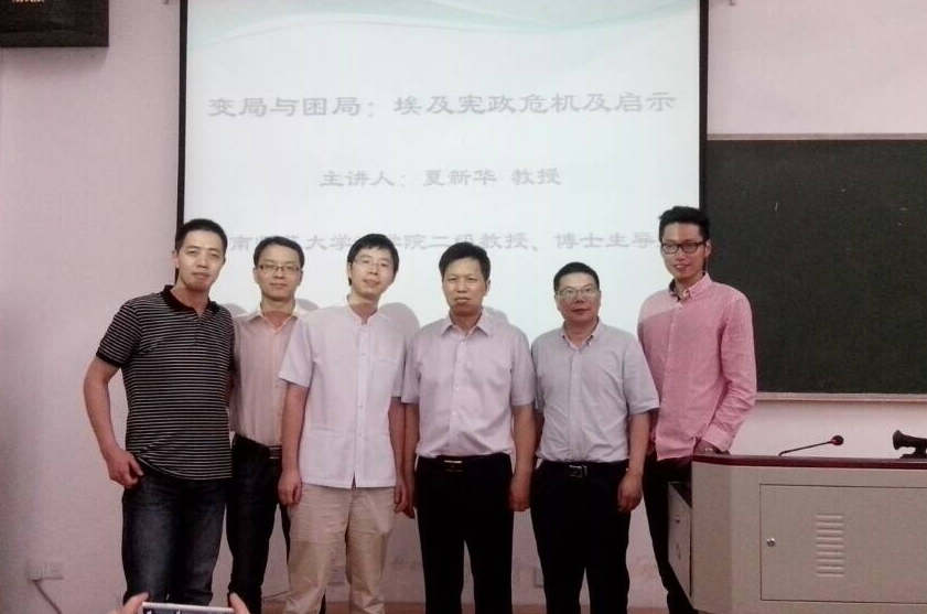 主讲结束后进行了激烈的评论。陈雄老师对夏新华老师的宪政终极目标提出了疑问,他认为人权、自由才是宪政的终极追求。余凯老师则从政治学角度进行了解读,为民主化过程虽然可能引发动荡和危险,但这种“学游泳式”的训练却是民主的必由之路。张小虎博士补充到,塞西投票的过低率使得其缺乏民意基础,穆兄会潜伏在地下随时可能出来斗争,他还幽默地借用网络潮语说到“转型不易,宪政更难,且行且珍惜”。肖洪泳老师回顾了自己求学期间跟随夏老师研习法史的经历,并以“吾爱吾师,但更爱真理”为由提出商榷,认为埃及工具性的立宪是因为背后缺失民主,民主作为追求永远具有普适性,同时也不能因公投政治在未民主化的国家缺少力度就予以否定。蒋海松老师深为赞同夏老师从工具化角度分析埃及和中国宪政困局,但他也对自己的老师提出商榷。蒋老师认为,埃及表面上是引入民主引发动乱,但这并非民主之过,而是埃及之前长期威权政治累积的弊端爆发而已,其过并不在民主,不能因此对民主污名化。威权政治虽然表面上能维护社会稳定,但会带来长远的停滞与僵化,并不足取;他也不赞成将民生经济作为民主的终极价值,民主未必与经济成正比,否则这也是民主工具论,反之某些独裁可能在短期内会促进经济,而自由、尊严是比经济更重要的价值追求。评论之后,听众就青年政治态度、埃及司法设置等提出了一些问题,也对一些评论人的意见进行商榷,气氛十分炙热。