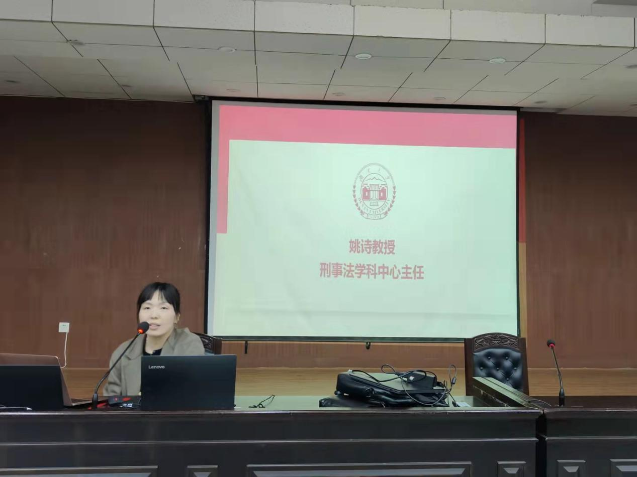 刑事法学科中心代表姚诗教授发言时强调刑法打击犯罪,保障人权,刑法学作为维护社会秩序、追求公平正义的学科,也具有极强的课程思政关联,需要将刑法学的的知识与思政元素进行有机结合。如正当防卫制度的激活是对人民根本利益的保护,讲述刑法各罪名时要注意基本价值的衡量。既要注重对被害人合法权益的保障,也要注重程序上的公平正义。刑法应当时刻保持谦抑性原则,从而获取最大的社会效益。