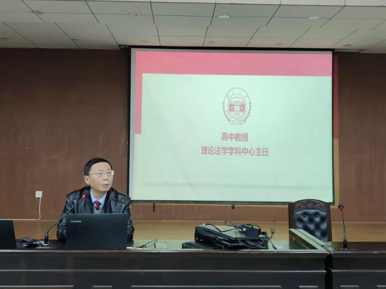 理论法学学科中心主任高中教授指出,理论法学和课程思政存在天然契合,习近平法治思想是马克思主义法治理论中国化的最新成果,是理论法学研究和课程思政的行动指南。高中教授重点分享课程思政中应该辩证把握的两对矛盾关系:第一,要正确处理好理想与现实的关系。课程教学既要有思想有情怀,也要认识到中国国情中国特色,立足中国大地。第二,辩证对待解构与建构的关系。既要有思想的反思,也要有制度建构的导向,不能为了解构而解构,为批判而批判,而是要通过课程思政建设,引导学生正确认识世界形势和中国特色,坚定走中国特色社会主义法治道路的理想和信念。
