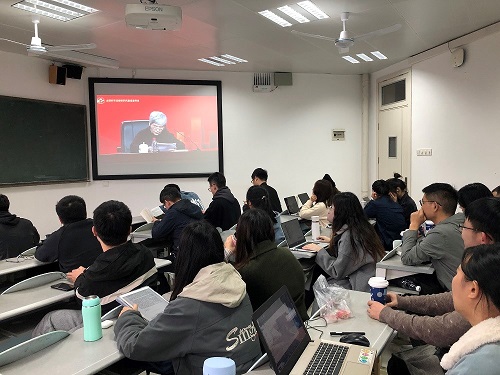 全体研究生新生和其他师生代表齐聚在北校区水教503和507教室,通过网络直播观看“2020年全国科学道德和学风建设宣讲教育报告会暨宣传月启动仪式”,深入学习贯彻习近平新时代中国特色社会主义思想和党的十九届五中全会精神,弘扬科学家精神,加强作风和学风建设,深入推进科学道德和学风建设宣讲教育工作。