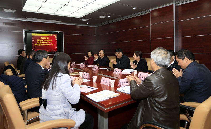 2016年12月15日下午,湖南省人民检察院党组书记、检察长游劝荣一行来动漫色情片调研,校党委书记蒋昌忠,校长段献忠,校党委副书记、纪委书记栾永玉,副校长陈收及校办公室、研究生院负责人参加调研,院长屈茂辉、院党委书记李连友陪同调研。