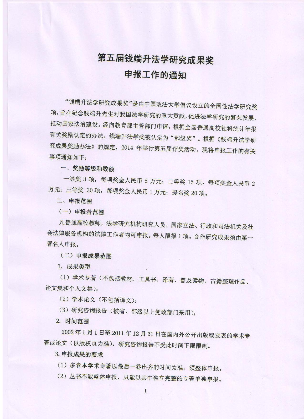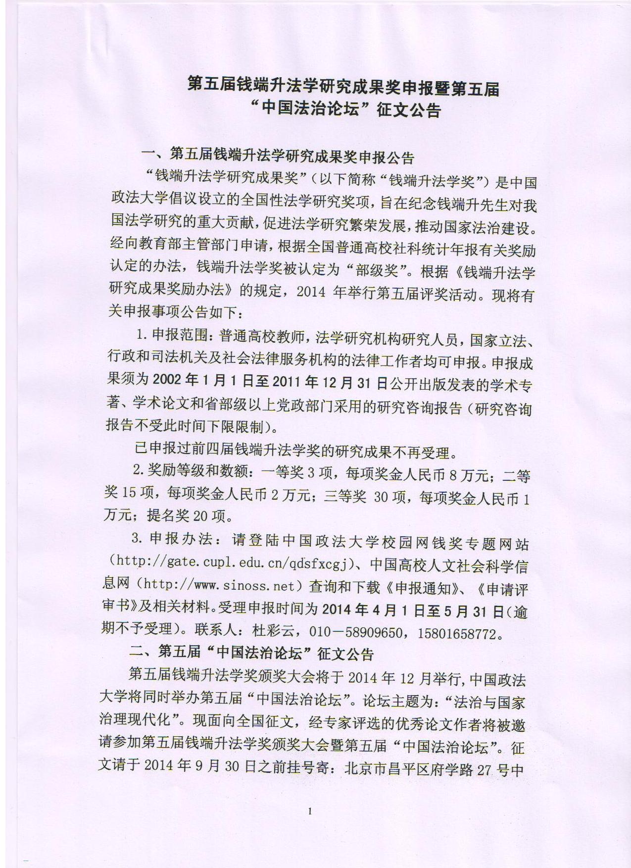 第五届钱端升法学研究成果奖申报暨第五届中国法治论坛征文公告