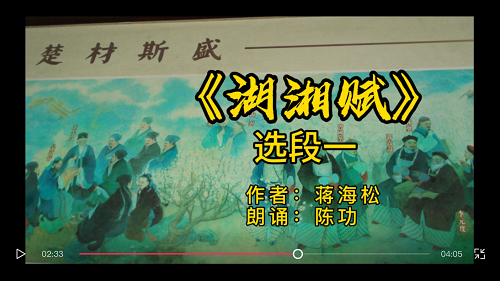 (蒋海松讲座中插入的少年时代诗作《湖湘赋》朗诵片段)