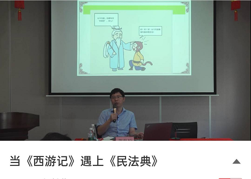 "《西游记》是法律宝典,也是民法典素材大全。有了民法典,妖精害怕了、社会和谐了,徒儿们,要好好学习民法典……"活动中,蒋教授以幽默诙谐、寓教于乐的教学风格,带着大家回顾了家喻户晓的电视剧《西游记》,用里面耳熟能详的故事,结合民法典的新规定,由表入里、由浅入深、由轻到重,为现场听众带来了一场生动有趣的法律课程,并延伸介绍了未成年人享有的权利义务等相关法律规定,深入浅出地讲解了青少年在遭到权利侵害时维护自身合法权益的正确处理方式。《深圳晚报》以《当<西游记>遇上民法典,深圳大鹏普法讲座画风生动有趣》对本场讲座进行了专题报道。活动了进一步加深了青少年对民法典的认识,引导青少年将民法典带回校园、带回书桌。活动同时在网络直播,点击率再创新高。