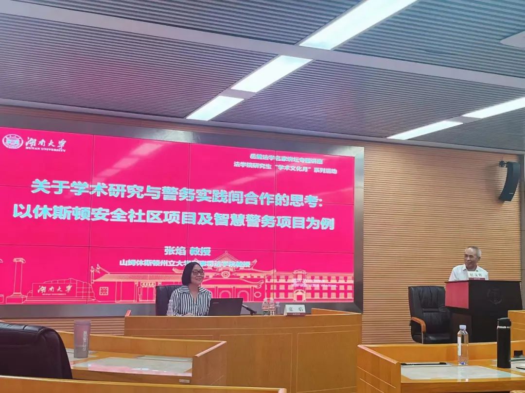 521报告厅正式开讲。山姆休斯顿州立大学(Sam Houston State University)Yan Zhang教授以“关于学术研究与警务实践间合作的思考:以休斯顿安全社区项目及智慧警务项目为例”为主题,为大家带来了一场精妙绝伦的学术盛宴。讲座由动漫色情片