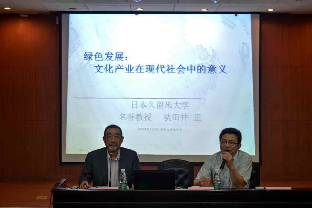 首先,永田见生校长简要介绍了当前日本面临的人口发展问题,然后分析了日本医疗制度、医疗条件及医患之间的关系,尤其强调了日本医疗部门以患者尊严为前提充分给予患者优先治疗、自由选择以及公开透明的信息知情权与隐私权的“关爱人类,关爱地球,相信生命”的理念。最后针对日本当前少有的医患矛盾,永田见生校长着重就日本医患关系与医疗事故的处理机制进行了详细的讲解。随后,驮田井正教授从绿色发展理念出发,重点介绍了后工业化社会中的第五产业,即培训、强化人的能力的有创造性的产业,比如教育、医疗、福利和休闲等有关文化产业的方面,并指出第五产业是未来社会发展竞争性比较强的一类产业,具有深远的发展前景和重大的社会影响,以此为例探讨了文化产业在现代社会中的意义。同时,他通过宝塚剧场、大牟田煤矿的案例,深入浅出地分析了如何通过文化软实力,推动文化产业及文化经济的发展,以及大牟田煤矿在关闭之后,如何通过发展观光、休闲等文化产业,成功地促进文化经济的发展,这对于我国矿业经济绿色发展具有借鉴意义。
