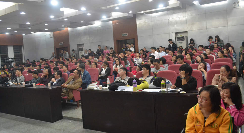 主讲结束后,赵明老师还回答了现场同学的提问。赵老师妙语迭出,字字珠玑,幽默风趣,生动形象,其独特的讲课风格让全场听众深感陶醉,全场笑声不断,高潮迭起。