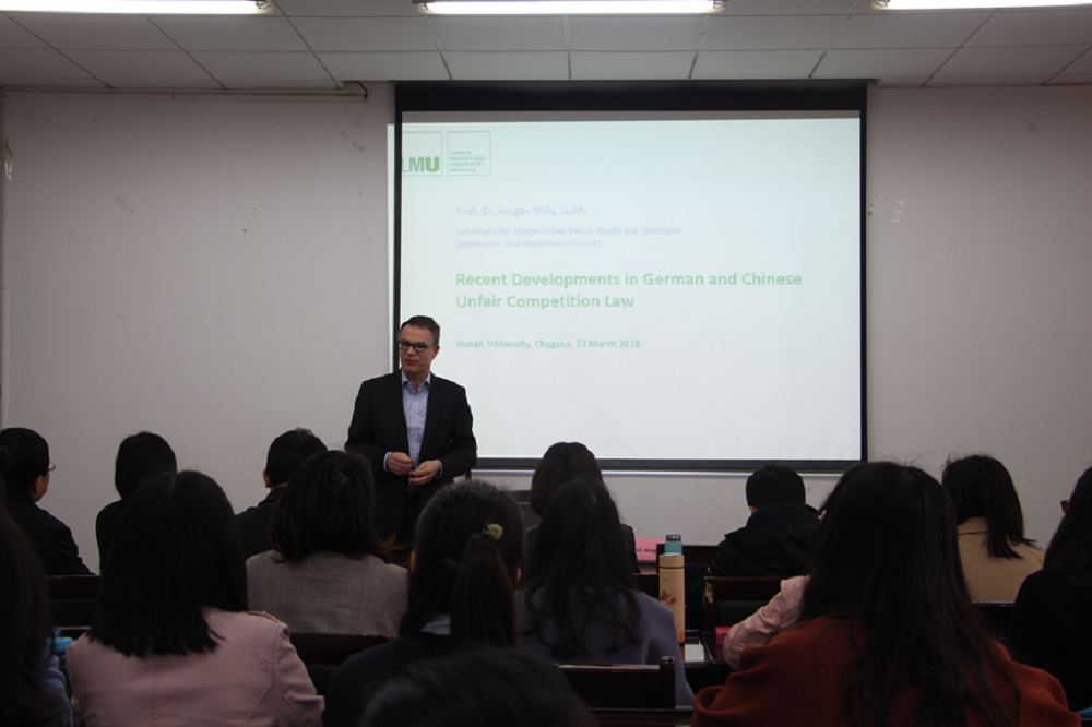 3月23日上午 Ansgar Ohly教授为学院师生做了 “中德反不正当竞争法的新发展”专题讲座,讲座由知识产权研究中心主任喻玲副教授主持。